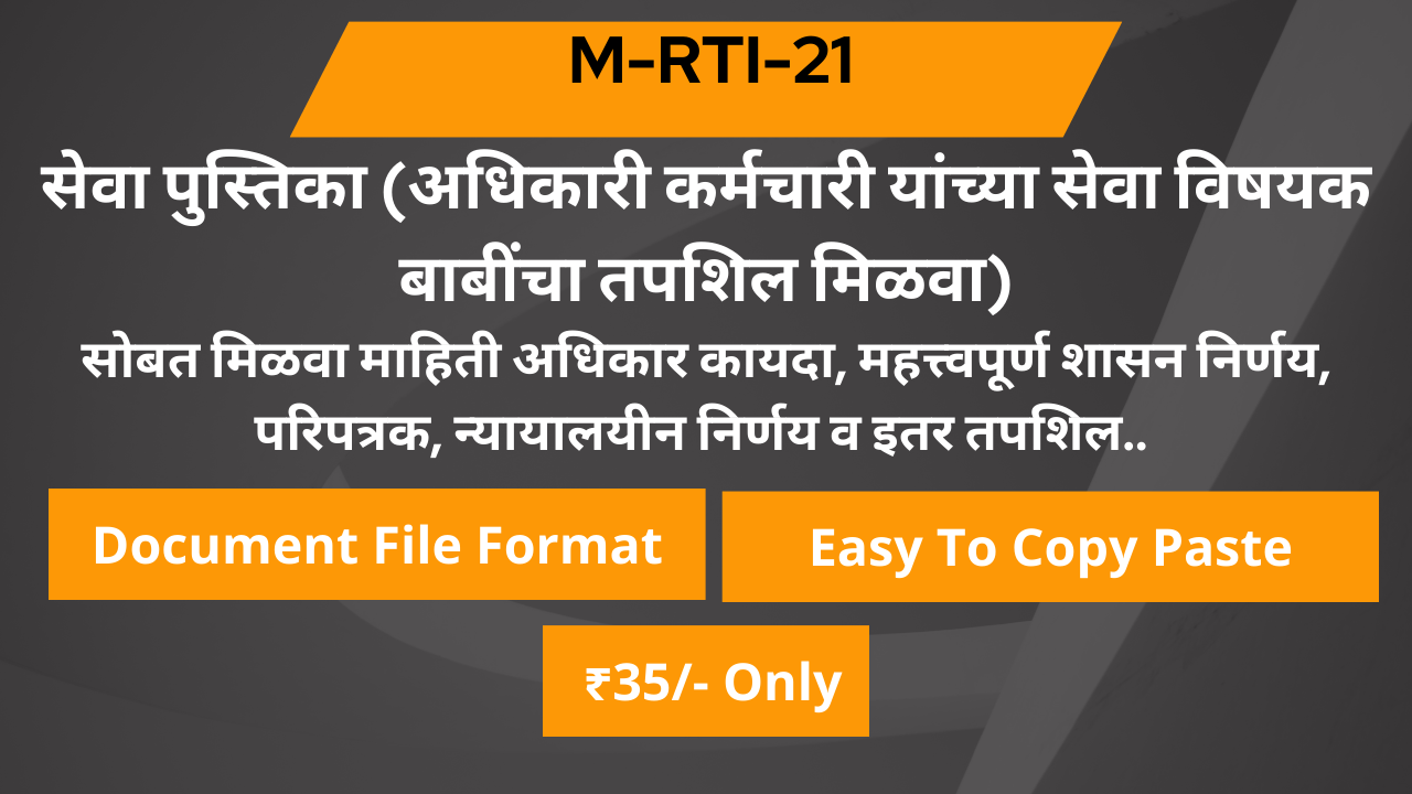 सेवा पुस्तिका (अधिकारी कर्मचारी यांच्या सेवा विषयक बाबींचा तपशिल मिळवा) अर्ज ईमेल द्वारा मिळवा..