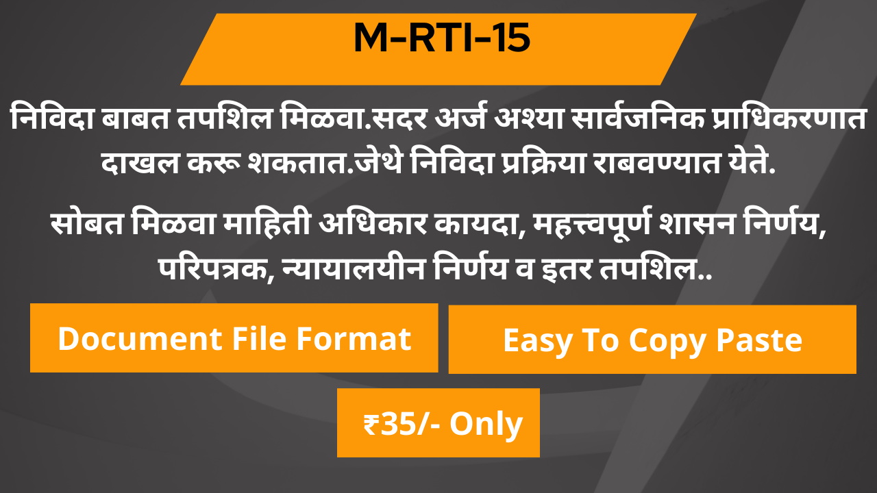 निविदा बाबत तपशिल मिळवा.सदर अर्ज अश्या सार्वजनिक प्राधिकरणात दाखल करू शकतात.जेथे निविदा प्रक्रिया राबवण्यात येते. अर्ज ईमेल द्वारा मिळवा..